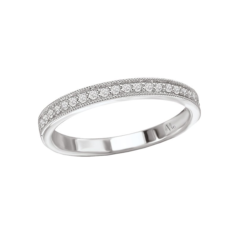 Matching Diamond Wedding Band in 14kt White Gold with Milgrain Detail. (D.1/6 carat total weight)