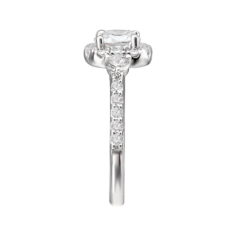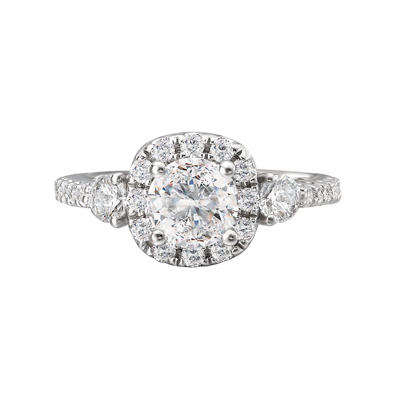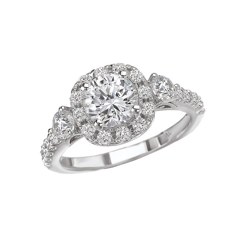 Halo Diamond Engagement Ring in 14kt White Gold. (D. 3/4 carat total weight) This item is a SEMI-MOUNT and it comes with NO CENTER STONE as shown but it will accommodate a 6.5mm round center stone.