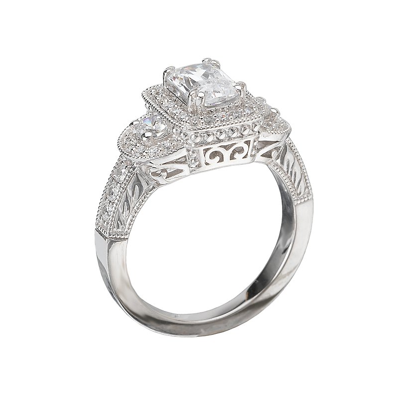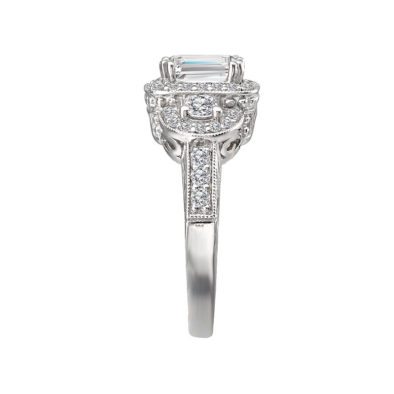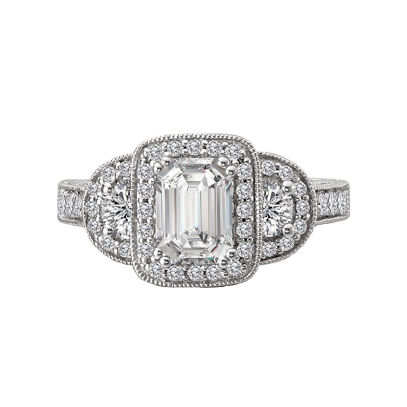 Diamond Engagement Ring in 14kt White Gold with Milgrain Detail. (D.1/2 carat total weight) This item is a SEMI-MOUNT and it comes with NO CENTER STONE as shown but it will accommodate a 7x5mm emerald center stone.