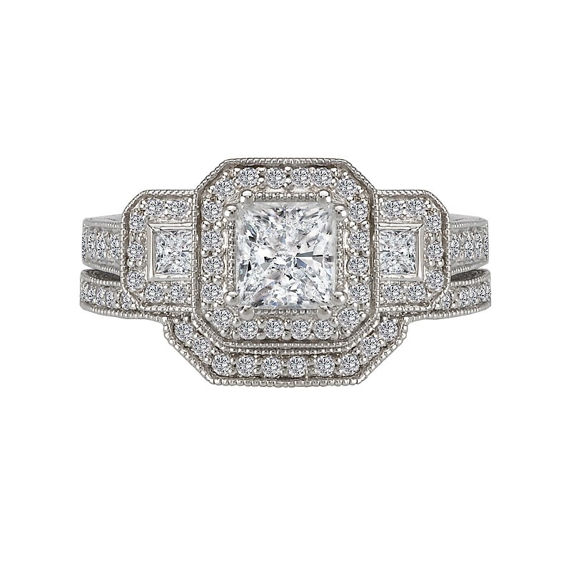 Exquisitely crafted of 14kt white gold and diamonds, each piece represents the designer’s vision of romance and elegance.