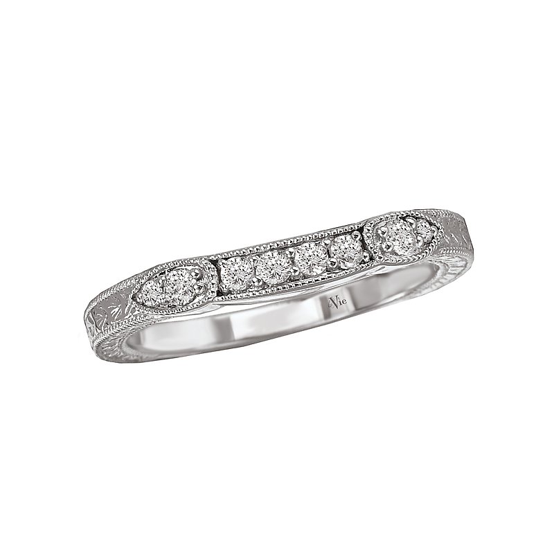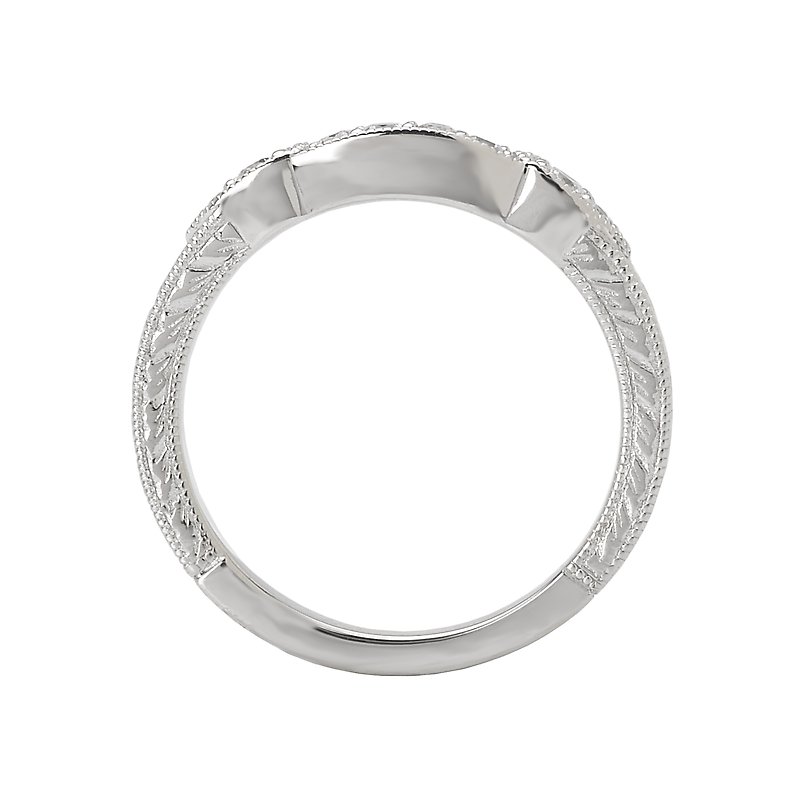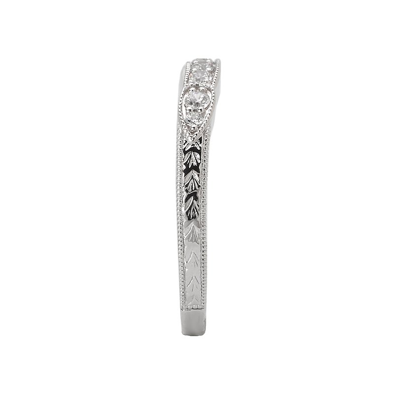Matching Diamond Wedding Band in 14kt White Gold with Milgrain and Etching Detail. (D 1/7 carat total weight)