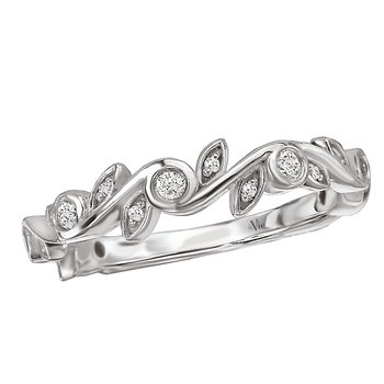 Leaf Shaped Matching Diamond Wedding Band in 14kt White Gold. (D 1/5 carat total weight)