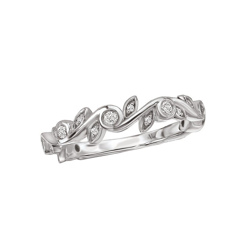 Leaf Shaped Matching Diamond Wedding Band in 14kt White Gold. (D 1/5 carat total weight)