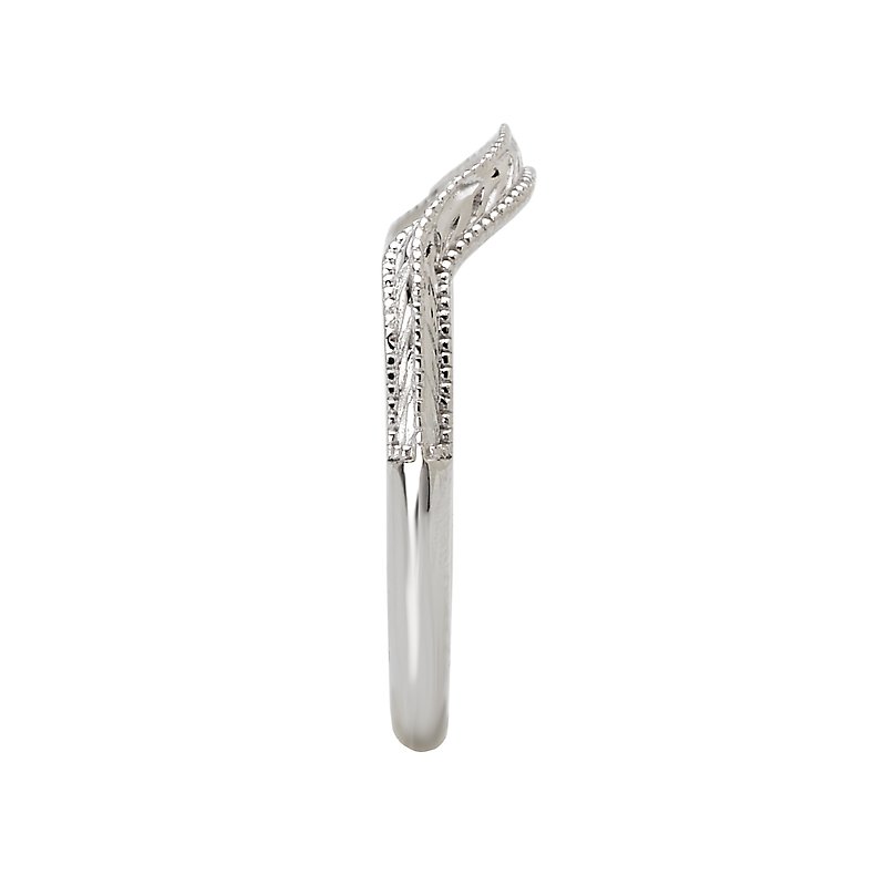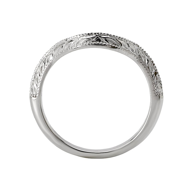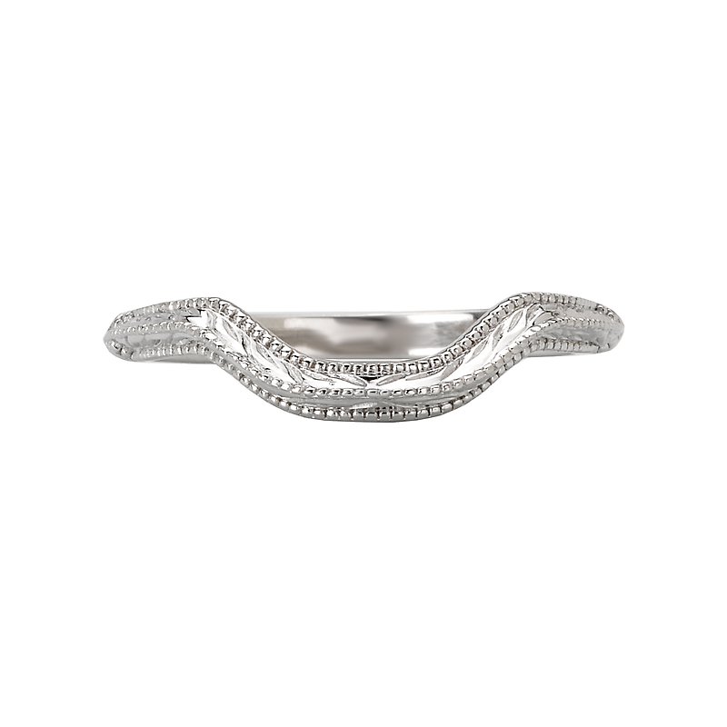 Curved Matching Wedding Band in 14kt White Gold with Milgrain and Etching Design.