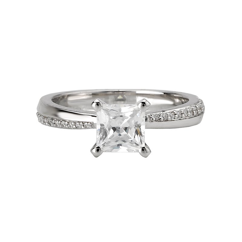 Mirror Image Diamond Ring in 14kt White Gold. (D.1/10 carat total weight) This item is a SEMI-MOUNT and it comes with NO CENTER STONE as shown but it will accommodate a 5.5mm princess center stone.