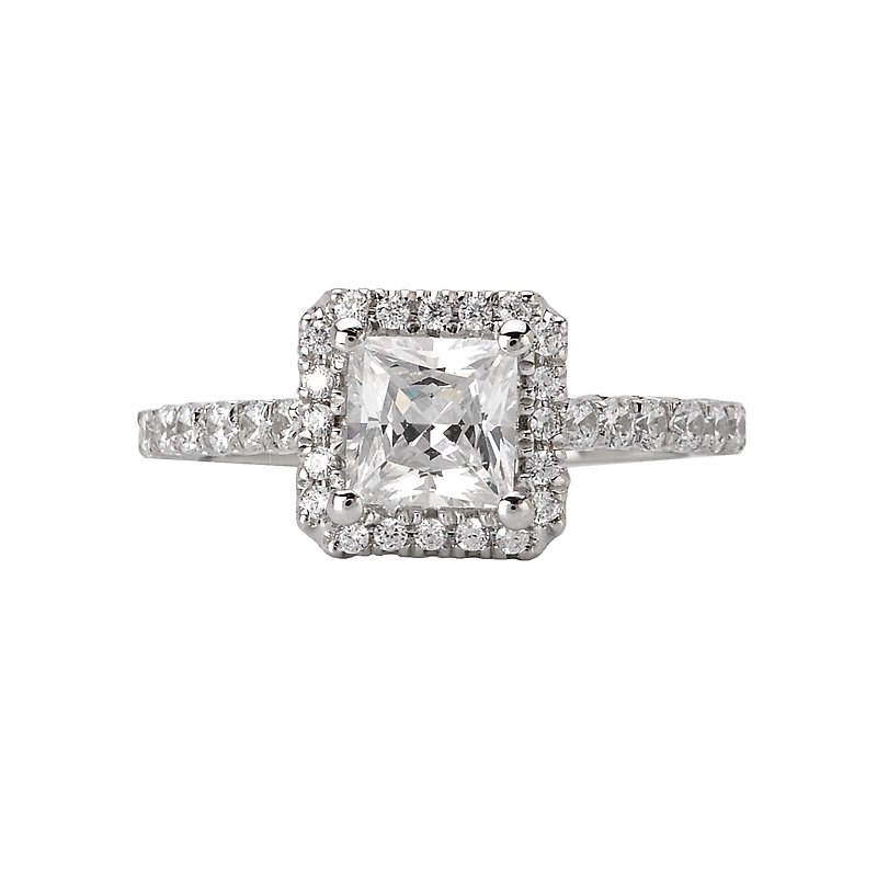 Square Halo Diamond Wedding Ring in 14kt White Gold. (D. 1/3 carat total weight) This item is a SEMI-MOUNT and it comes with NO CENTER STONE as shown but it will accommodate a 5.5mm princess cut center stone.