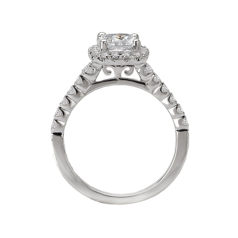 Square Halo Semi-Mount Diamond Wedding Ring in 14kt White Gold. (D. 1/3 carat total weight) This item is a SEMI-MOUNT and it comes with NO CENTER STONE as shown but it will accommodate a 5.5mm cushion cut center stone.