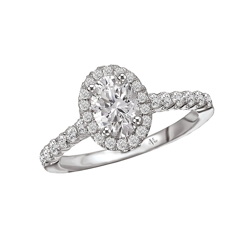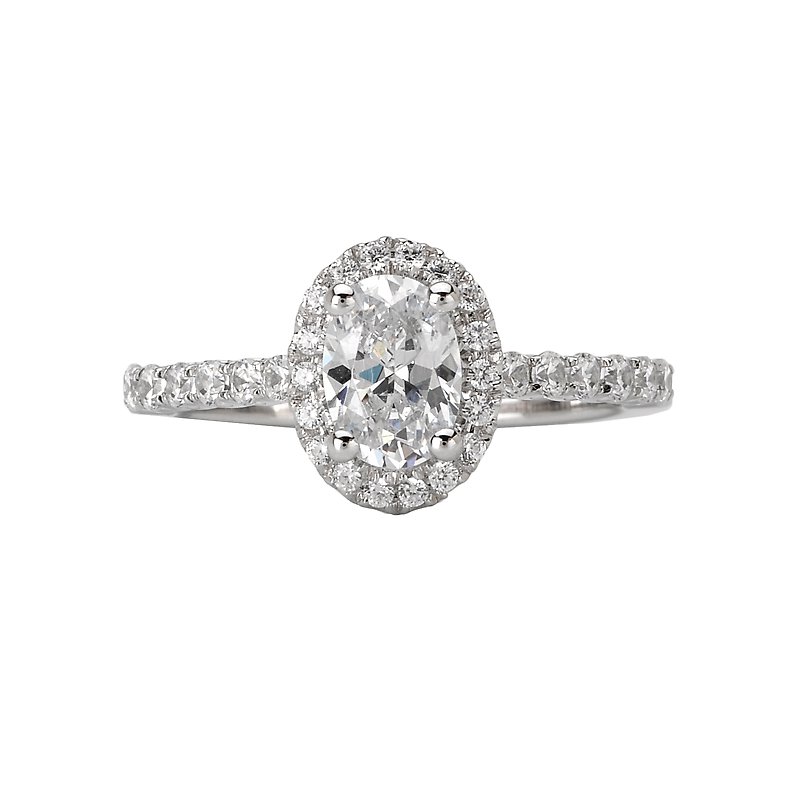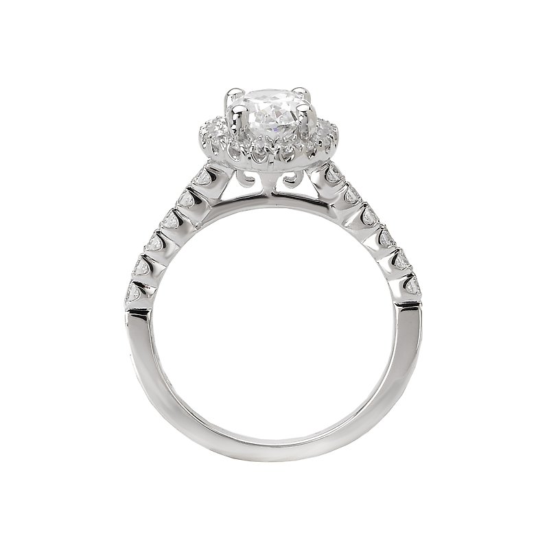 Oval Halo Diamond Ring in 14kt White Gold. (D.1/3 carat total weight) This item is a SEMI-MOUNT and it comes with NO CENTER STONE as shown but it will accommodate a 7.5x5.5mm oval center stone.