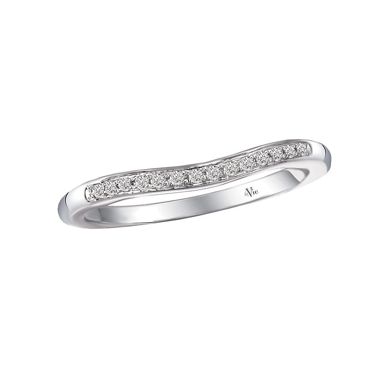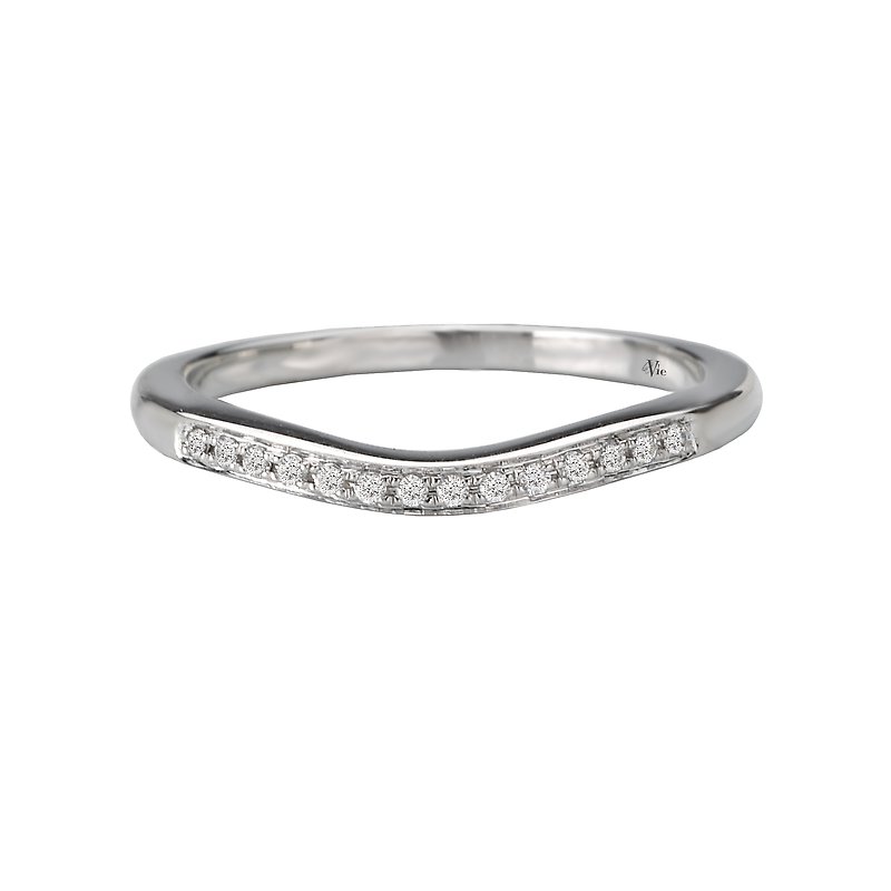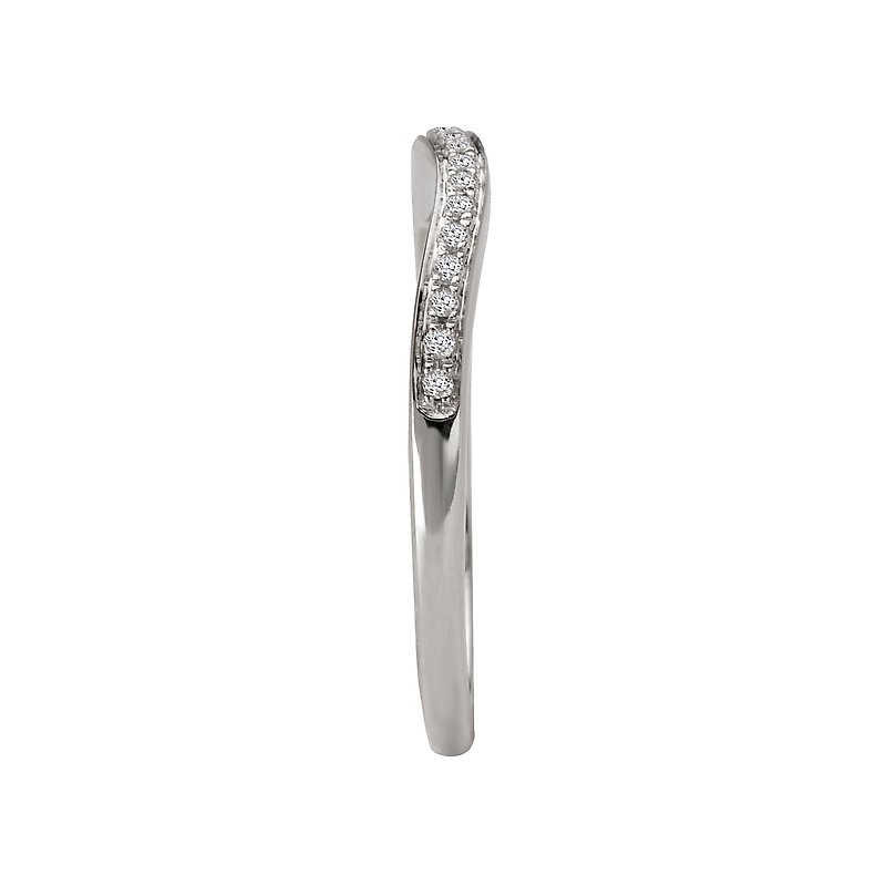 Curved matching wedding band crafted in high polished 14kt white gold lined with sparkling brilliant cut diamonds.. (D .07 carat total weight)