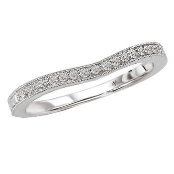 Curved Matching Diamond Wedding Band in 14kt White Gold with Milgrain Detail. (D 1/8 carat total weight)
