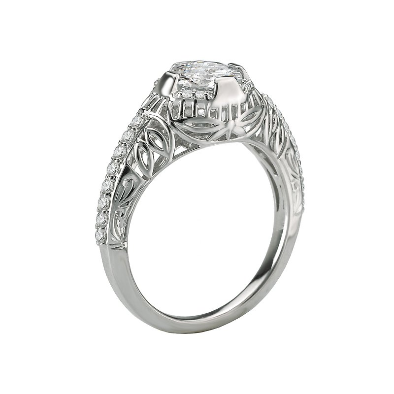 Exquisitely crafted of 14kt white gold and diamonds, each piece represents the designer’s vision of romance and elegance.