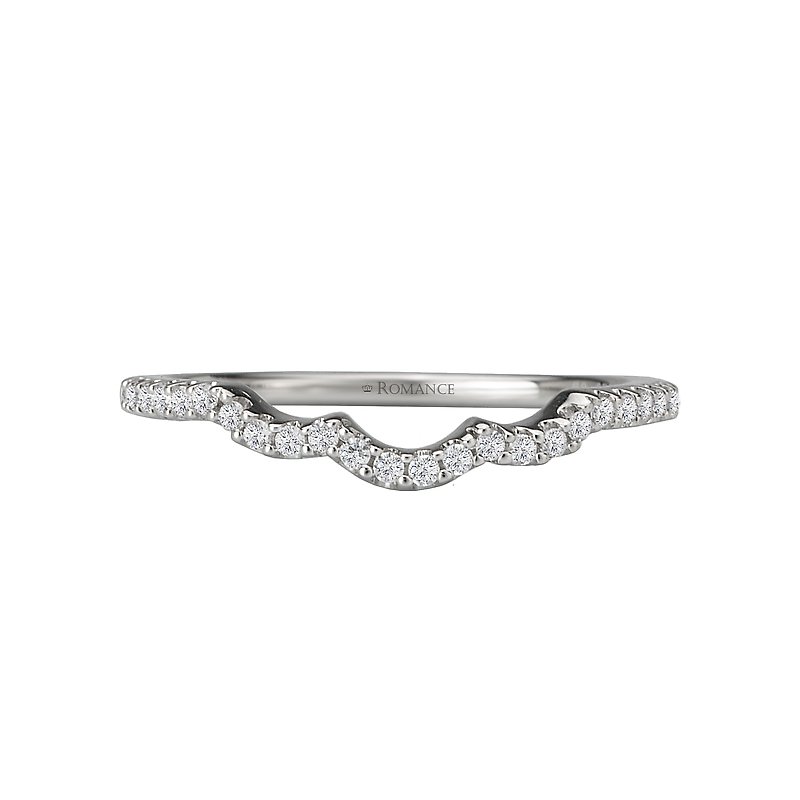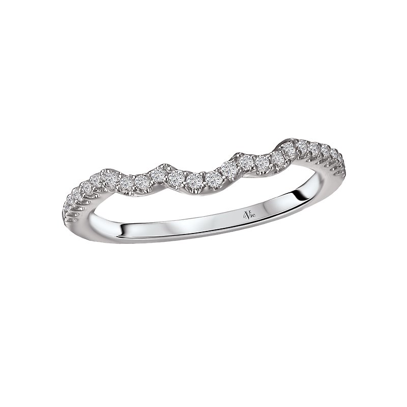Scalloped Matching Wedding Band in 14kt White Gold. (D 1/7 carat total weight)
