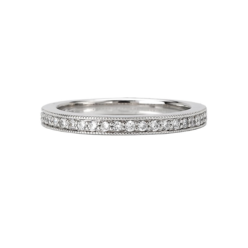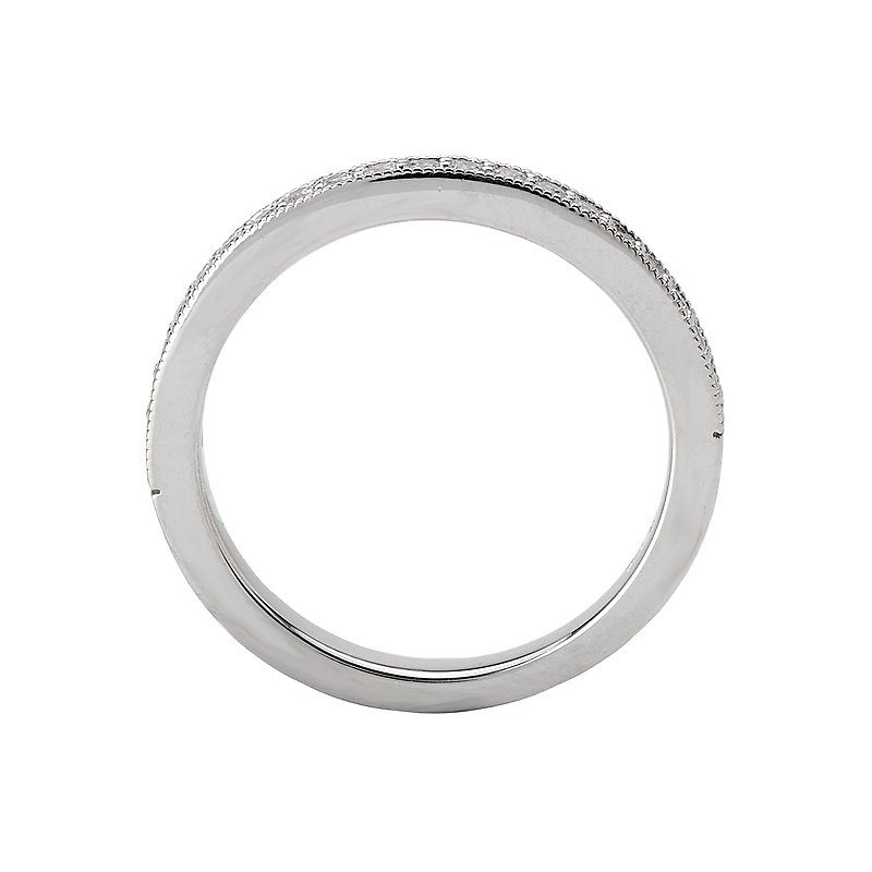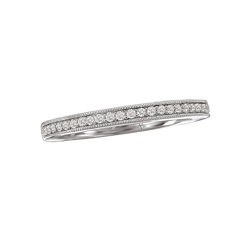 This is a Matching Wedding Band with Milgrain and Round Faceted Diamonds Created in 14kt White Gold. (D 1/7 carat total weight)