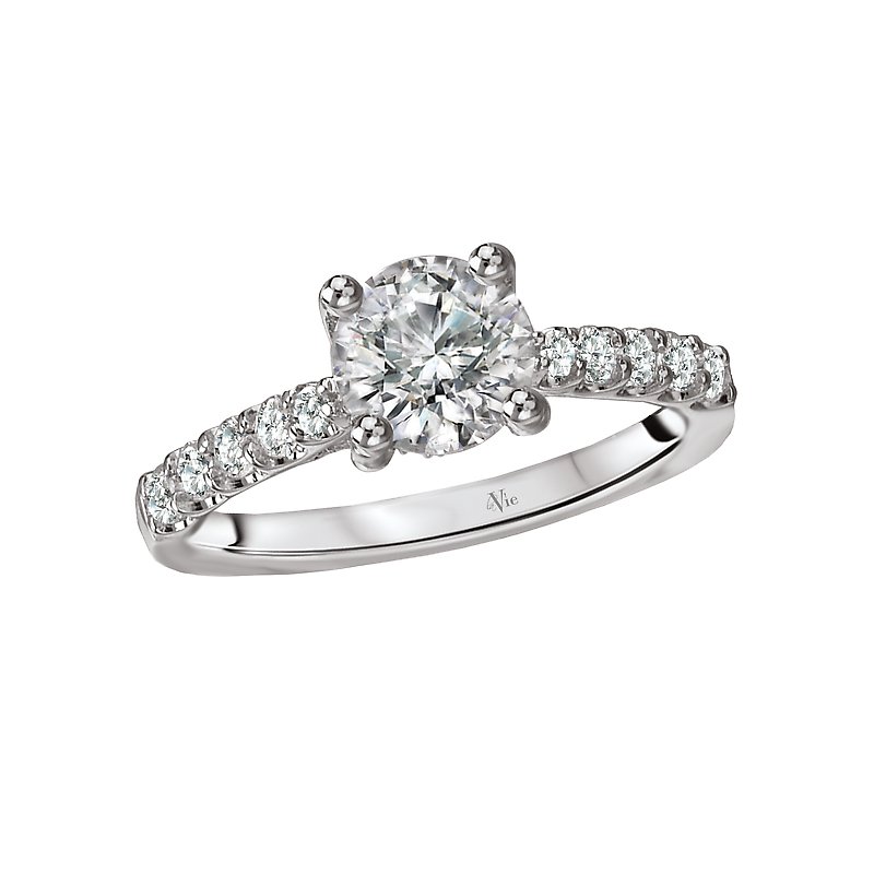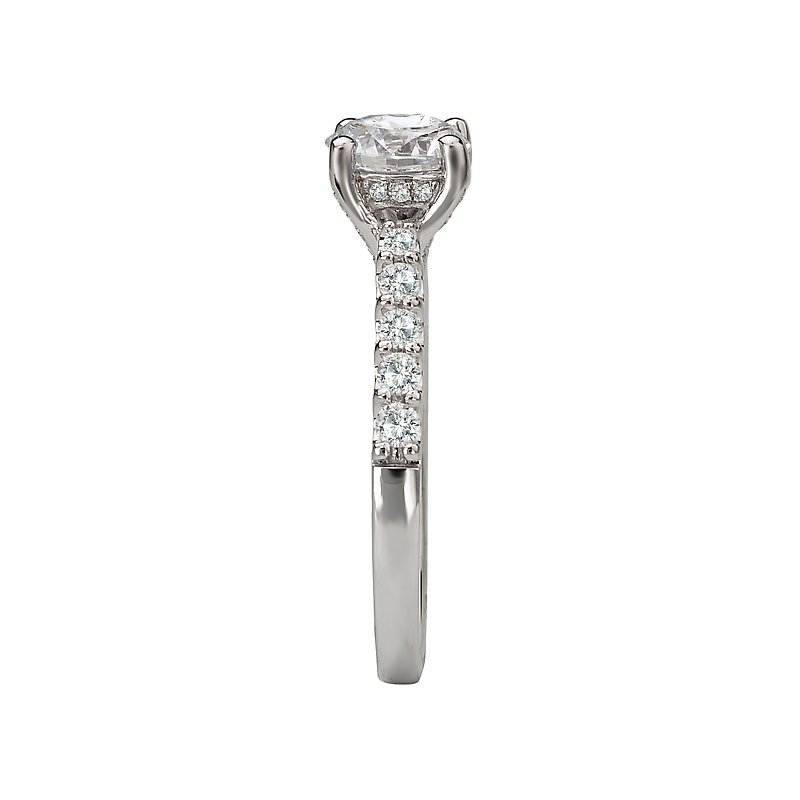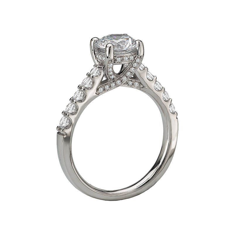 Trellis Design Diamond Ring in 14kt White Gold. (D 3/8 carat total weight) This item is a SEMI-MOUNT and it comes with NO CENTER STONE as shown but it will accommodate a 6.5mm round center stone.