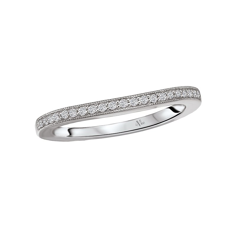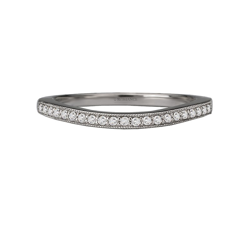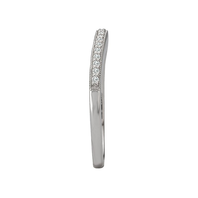 Curved Matching Wedding Band in 14kt White Gold with Milgrain Detail. (D 1/10 carat total weight)