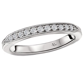 Matching Wedding Band in 14kt White Gold with Milgrain Detail. (D 1/6 carat total weight)
