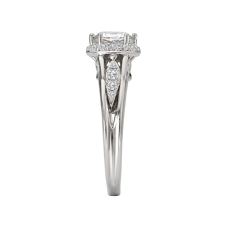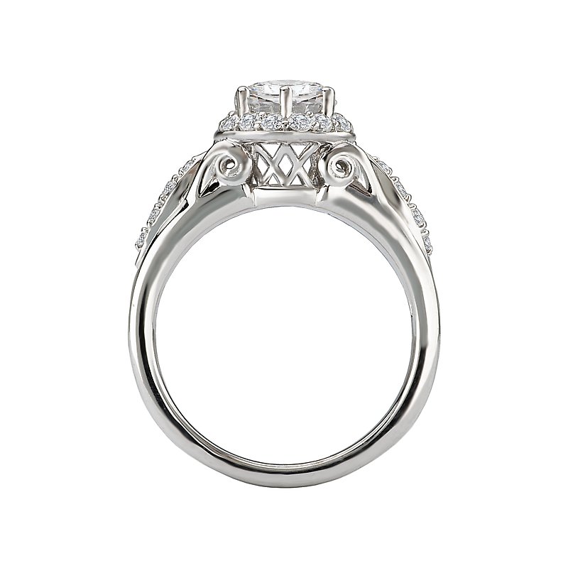 Round Halo Diamond Ring in 14kt White Gold. (D 1/3 carat total weight) This item is a SEMI-MOUNT and it comes with NO CENTER STONE as shown but it will accommodate a 6.5mm round center stone.
