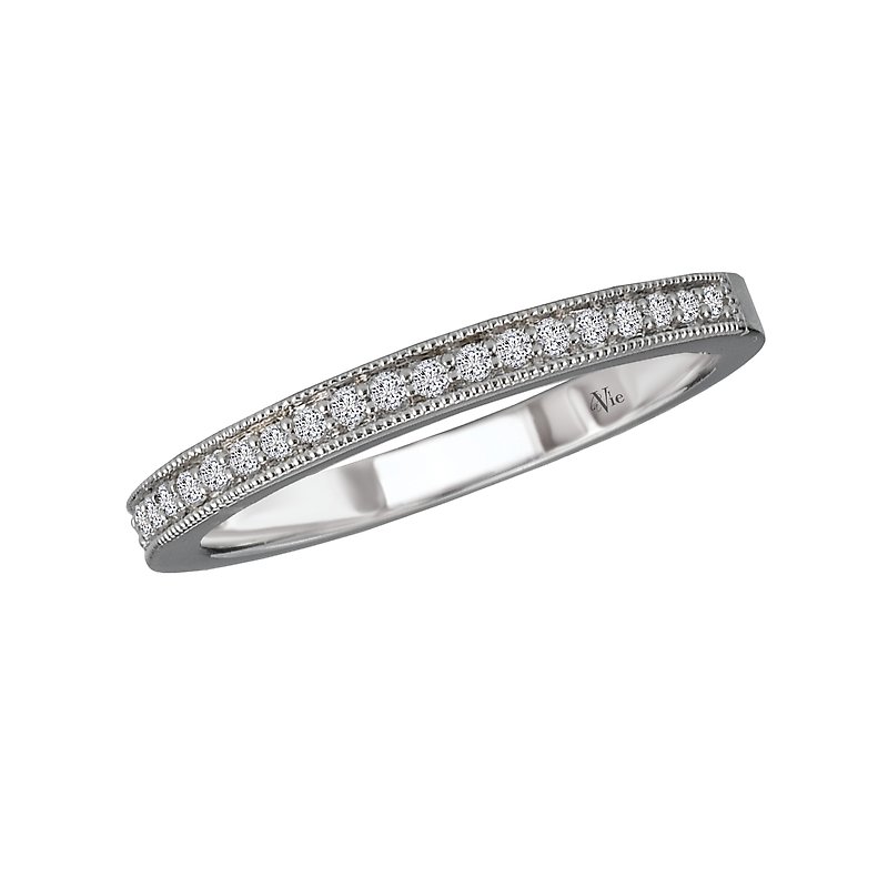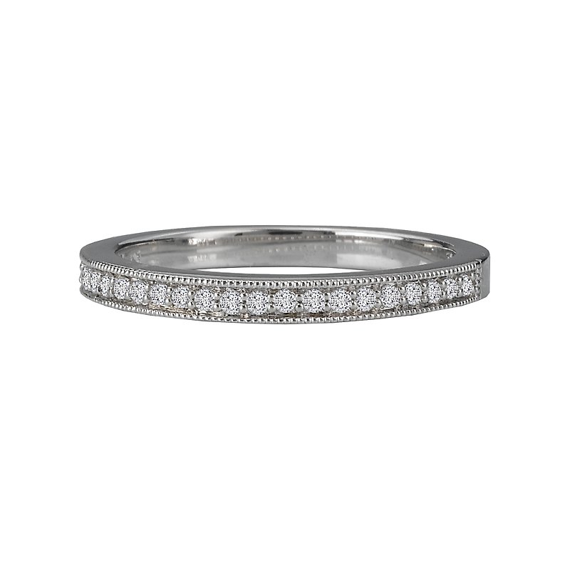Matching Diamond Wedding Band in 14kt White Gold with Milgrain Detail. (D.1/8 carat total weight)