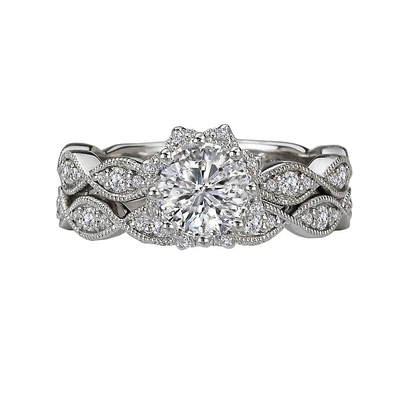 Matching Wedding Band in 14kt White Gold with Milgrain Detail. (D 1/4 carat total weight)