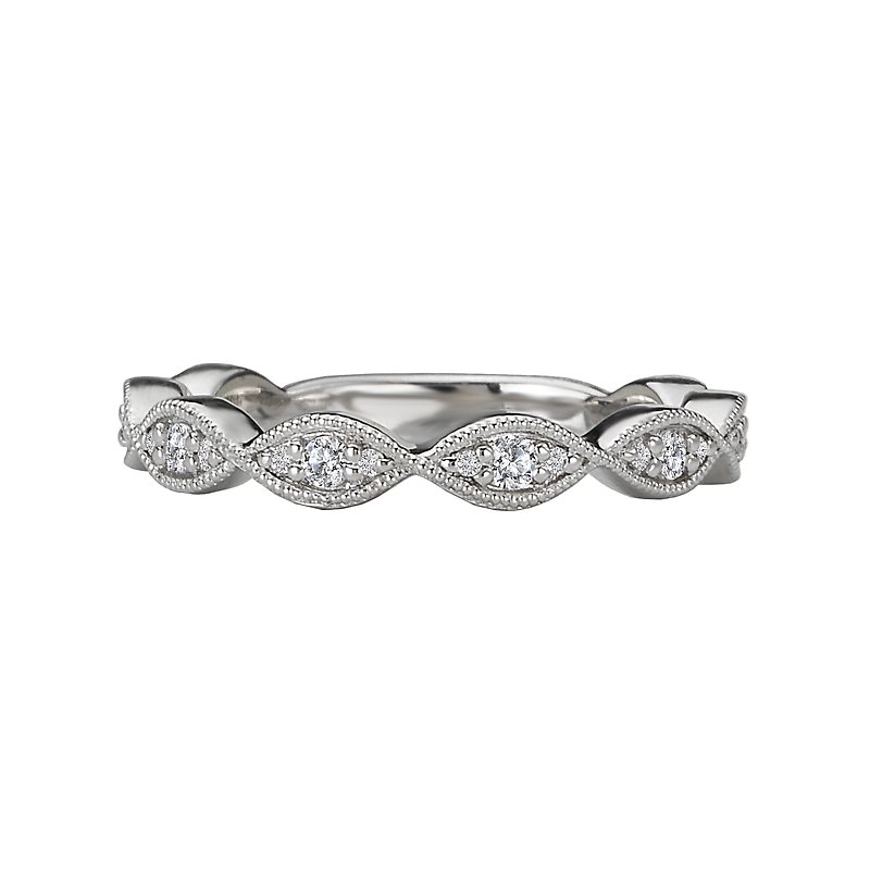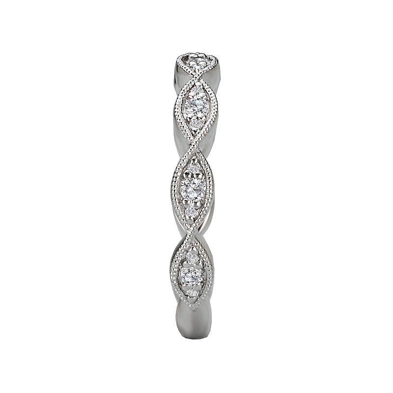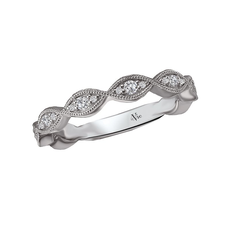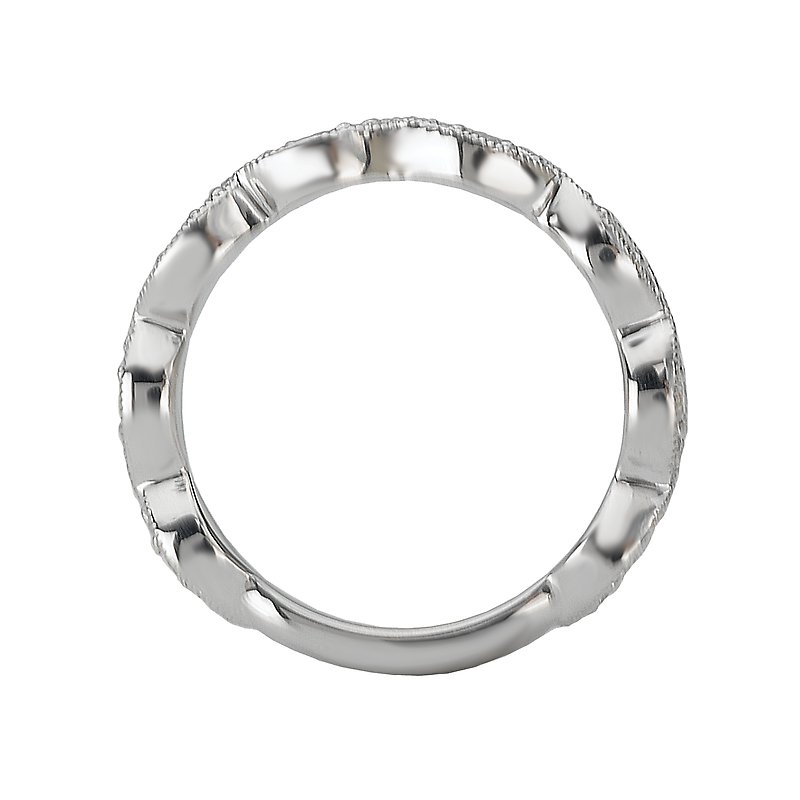 Matching Wedding Band in 14kt White Gold with Milgrain Detail. (D 1/4 carat total weight)