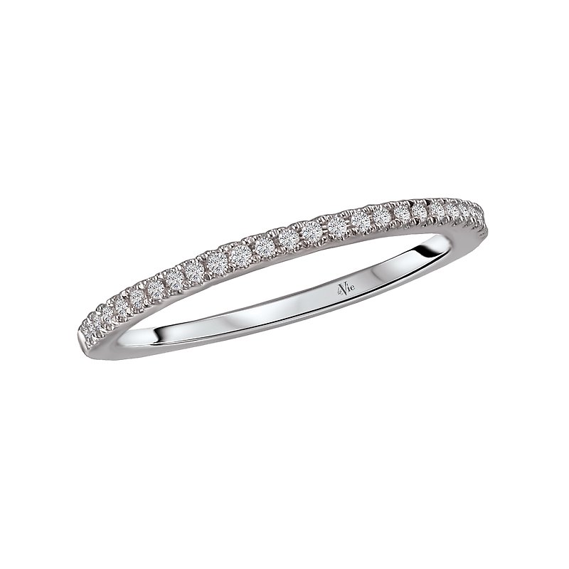 Matching Wedding Band in 14kt White Gold with Milgrain Detail. (D 1/10 carat total weight)