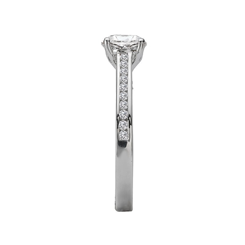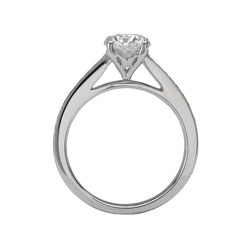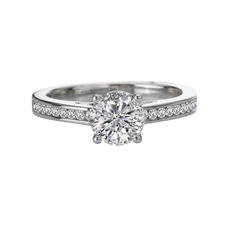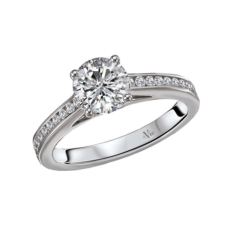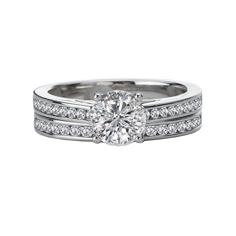 Channel Set Diamond Ring in 14kt White Gold. (D 1/5 carat total weight) This item is a SEMI-MOUNT and it comes with NO CENTER STONE as shown but it will accommodate a 6.5mm round center stone.