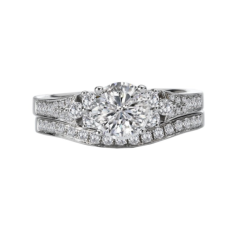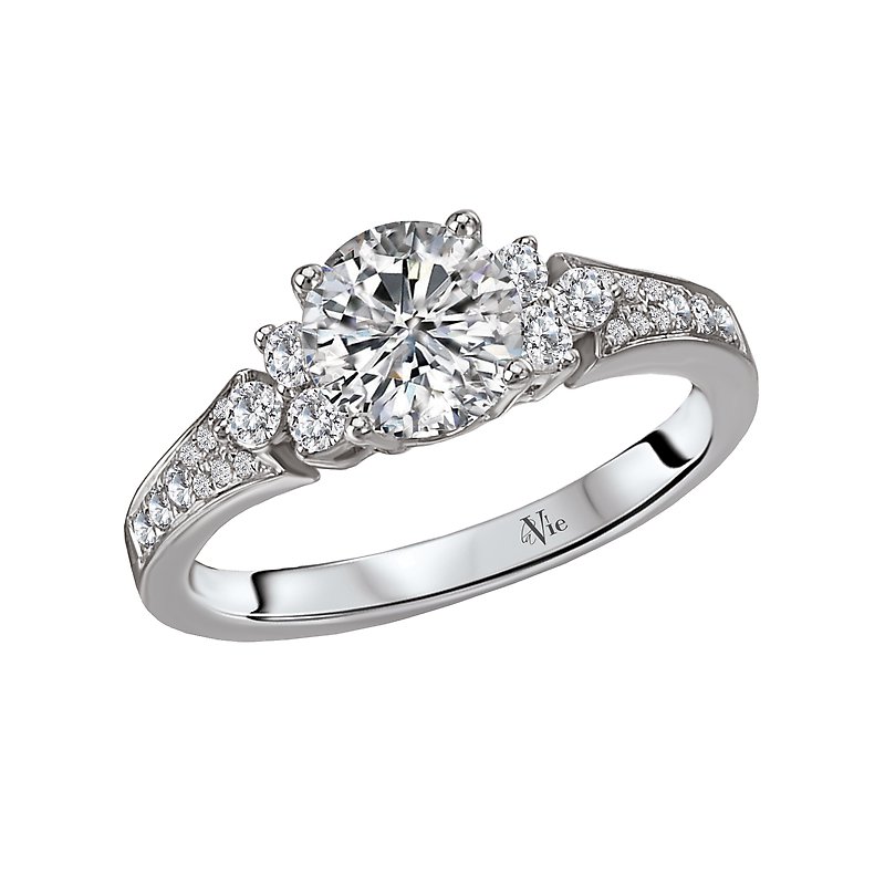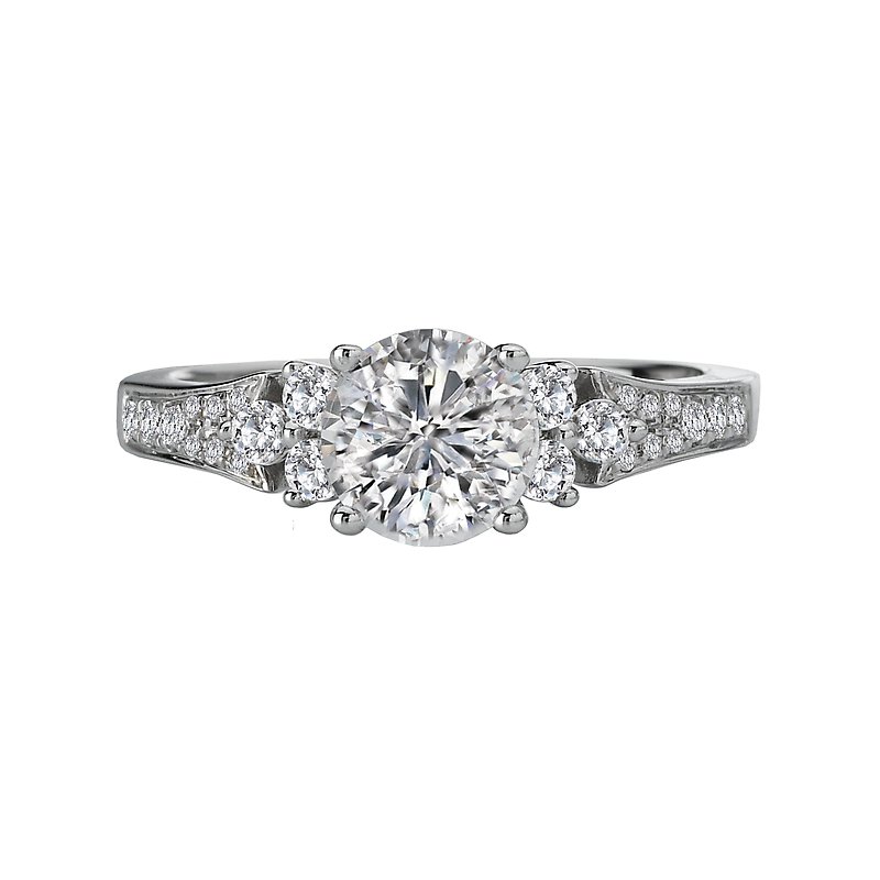 Diamond Ring in 14kt White Gold. (D 1/5 carat total weight) This item is a SEMI-MOUNT and it comes with NO CENTER STONE as shown but it will accommodate a 6.5mm round center stone.