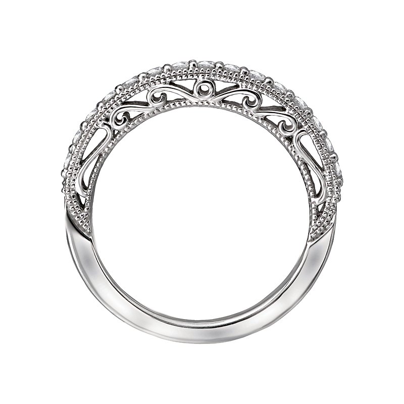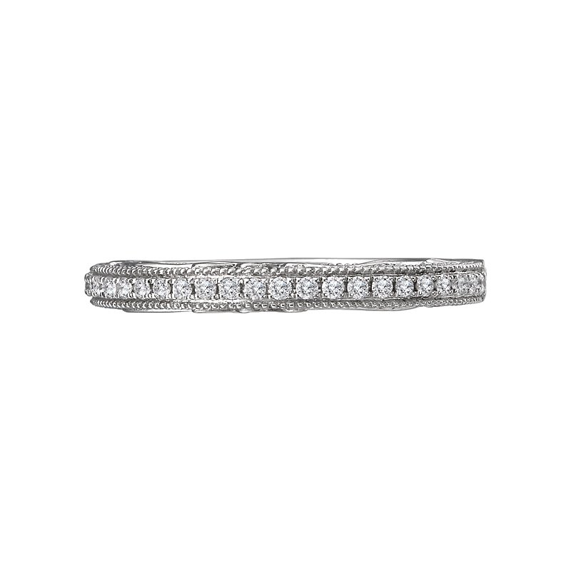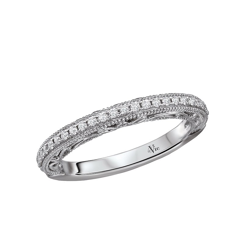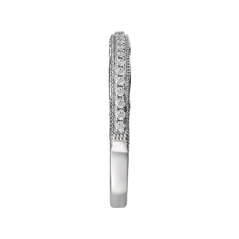 Matching Diamond Wedding Band in 14kt White Gold with Milgrain and Filigree. (D 1/7 carat total weight)