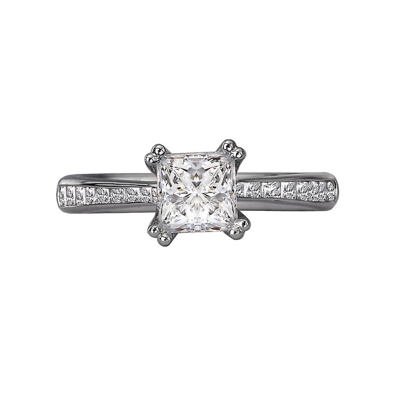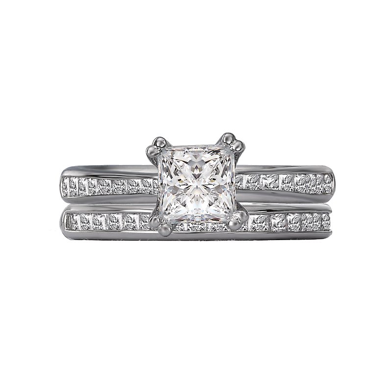 This is a matching wedding band with princess cut faceted diamonds set in 14kt white gold. (D 1/2 carat total weight)