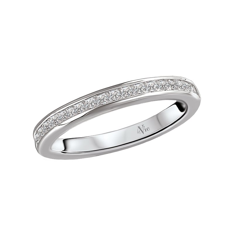 This is a matching wedding band with princess cut faceted diamonds set in 14kt white gold. (D 1/2 carat total weight)