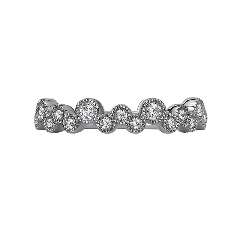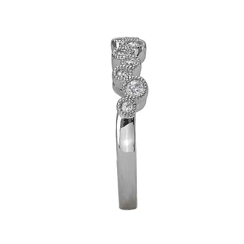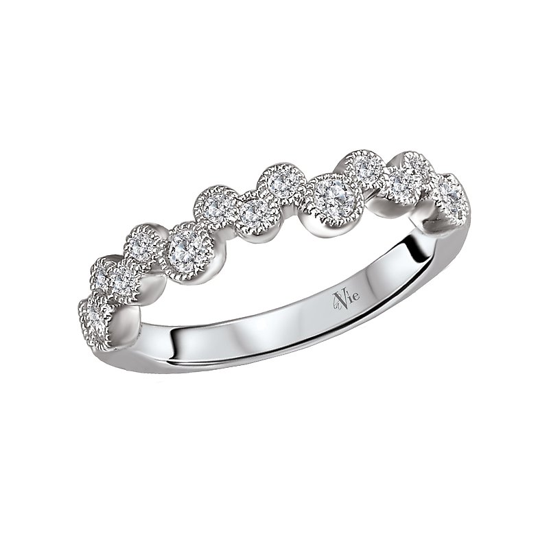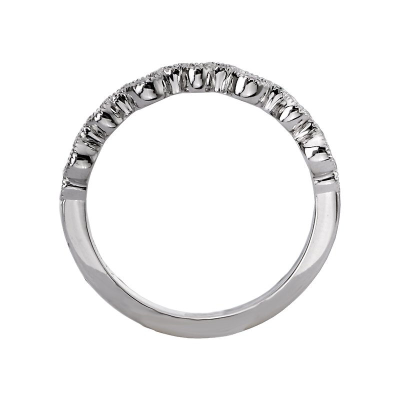 This is a matching faceted diamond wedding band with milgrain crafted in 14kt white gold. (D 1/5 carat total weight)