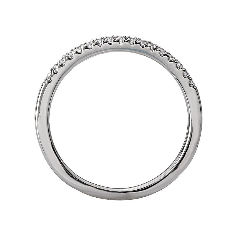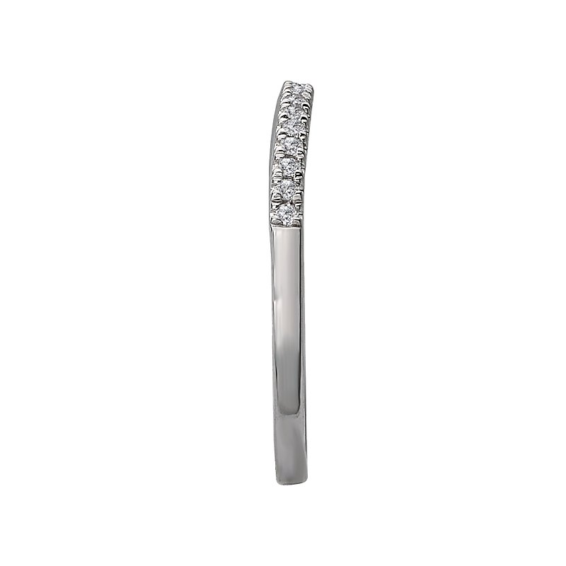 This is a matching wedding band created with a slight curve showcases round faceted diamonds set in high polished 14kt white gold. (D 1/10 carat total weight)