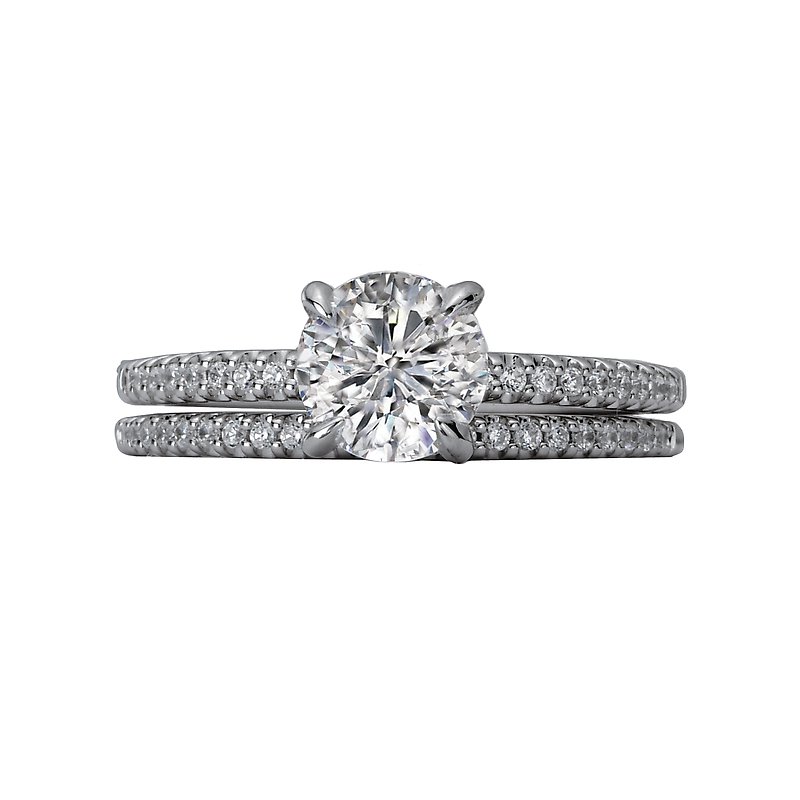 Exquisitely crafted of 14kt white gold and diamonds, each piece represents the designer’s vision of romance and elegance.