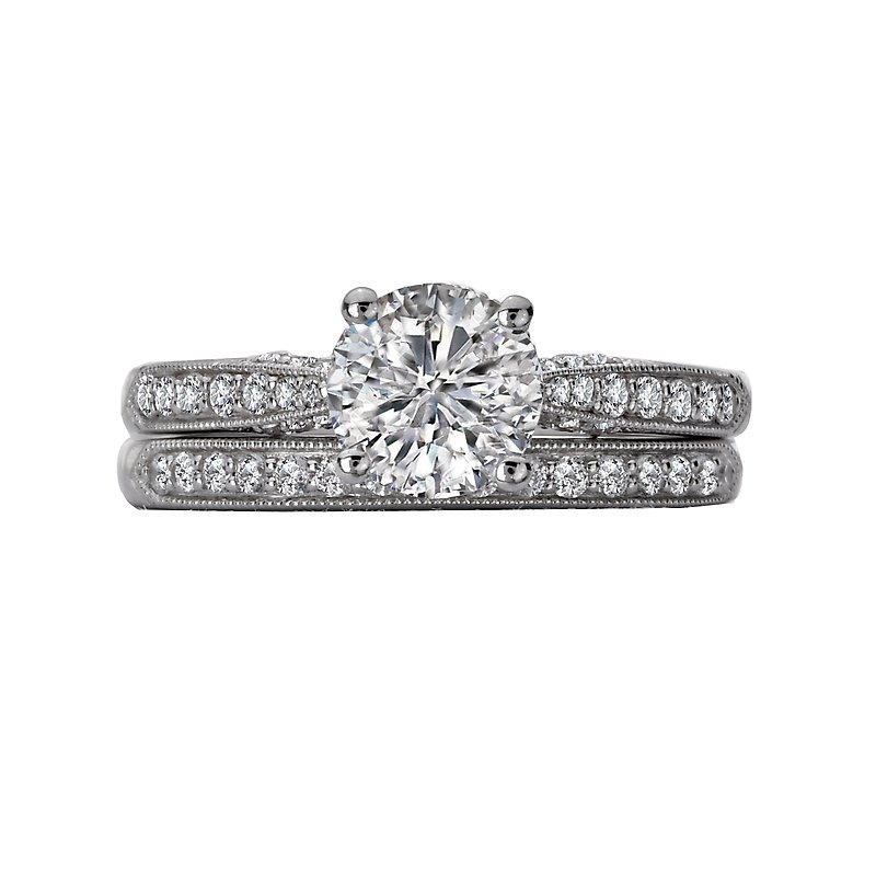 Exquisitely crafted of 14kt white gold and diamonds, each piece represents the designer’s vision of romance and elegance.