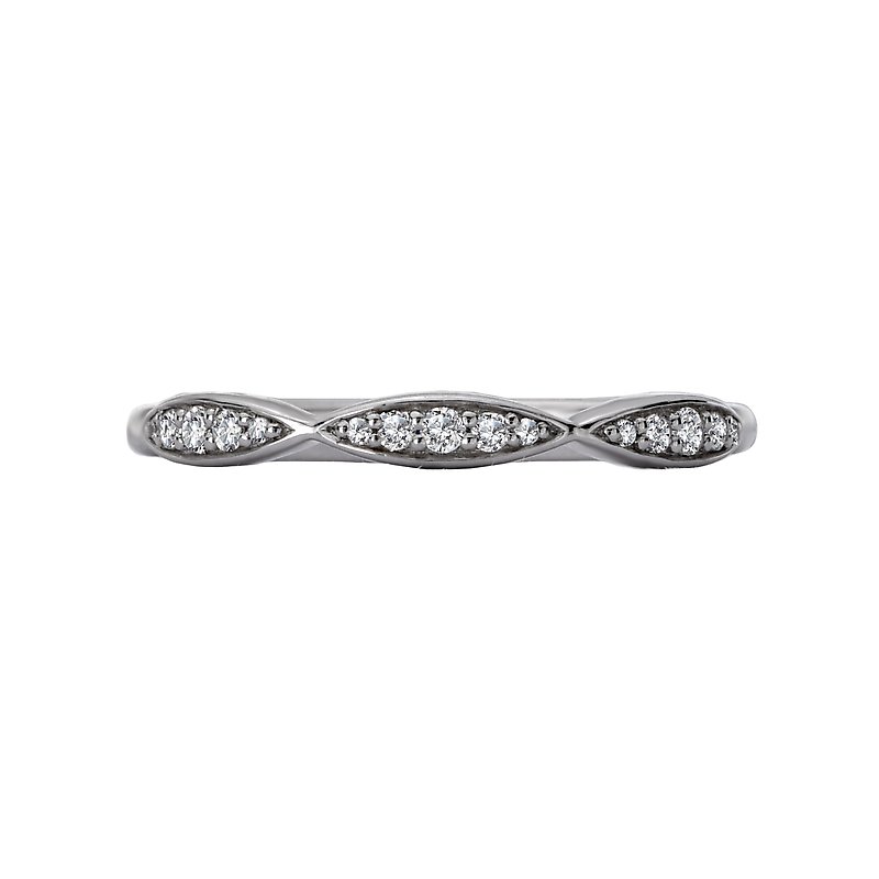 This is a matching wedding band created with round faceted diamonds set in high polished 14kt white gold. (D 1/10 carat total weight)