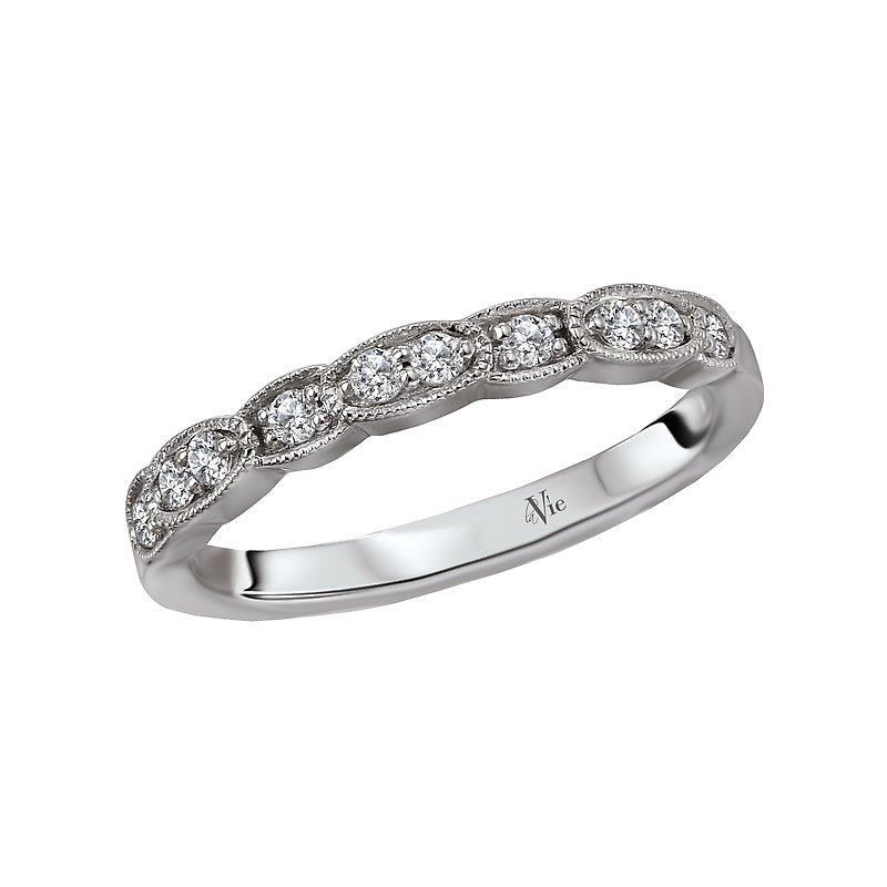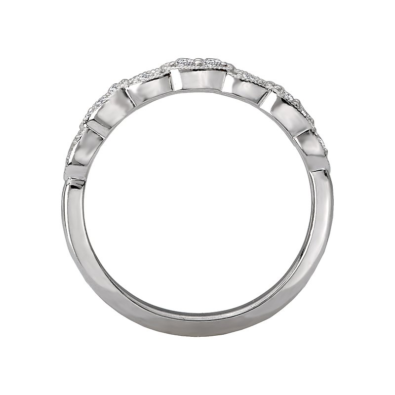 This is a matching wedding band created with round faceted diamonds set in high polished 14kt white gold. (D 1/6 carat total weight)