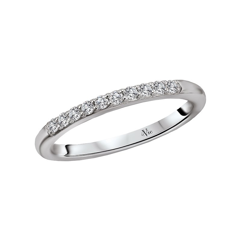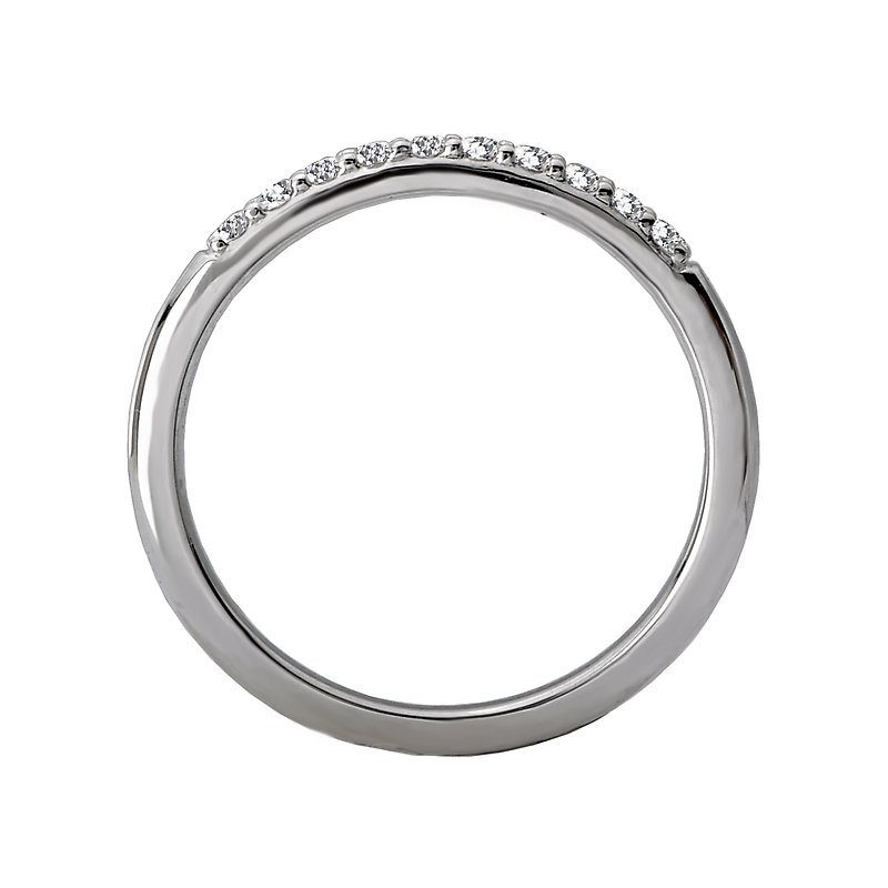 This is a matching wedding band created with round faceted diamonds set in high polished 14kt white gold. (D 1/7 carat total weight)