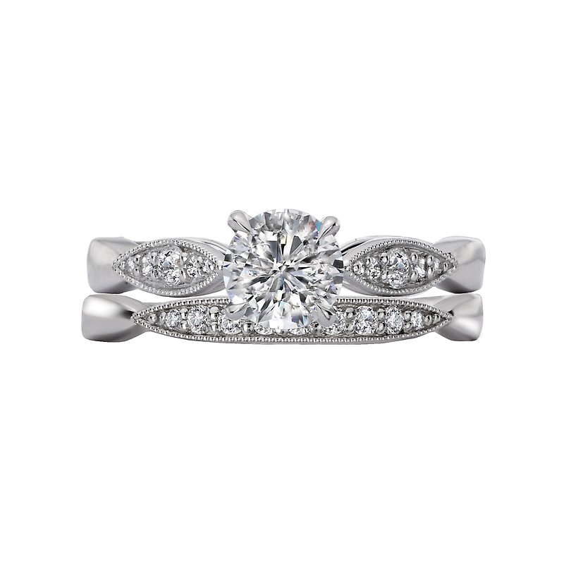Exquisitely crafted of 14kt white gold and diamonds, each piece represents the designer’s vision of romance and elegance.
