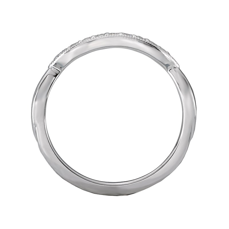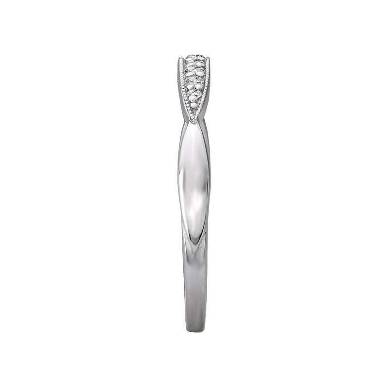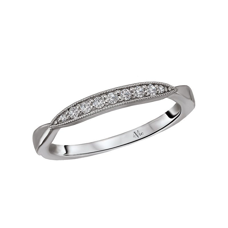 This is a matching wedding band created with round faceted diamonds set in high polished 14kt white gold with milgrain detail. (D 1/10 carat total weight)
