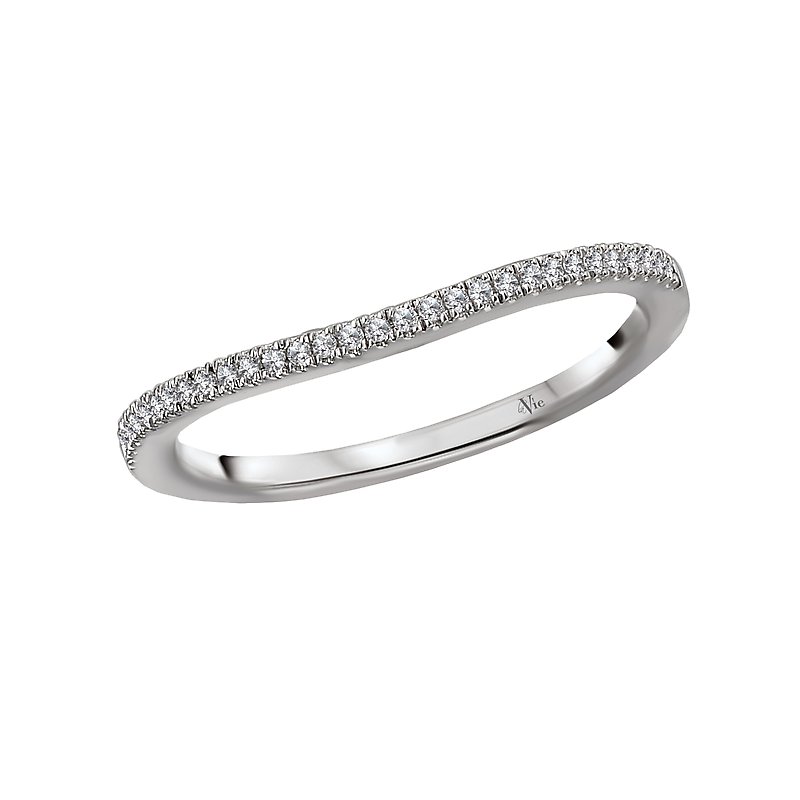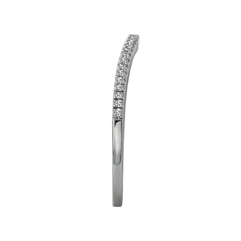 This curved wedding band features round faceted diamonds set in 14kt white gold band. (D .09 carat total weight)