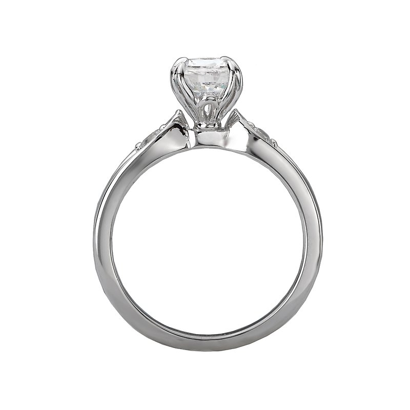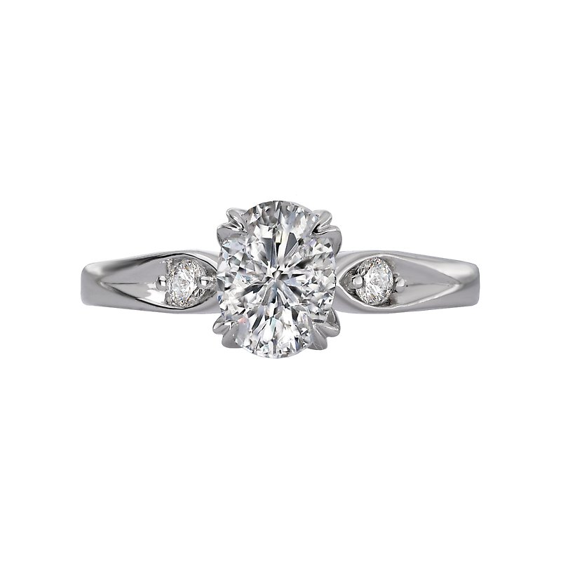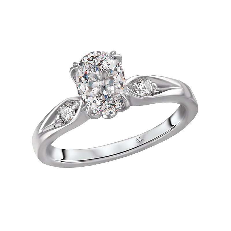 This bridal ring showcases sparkling diamonds surrounding the claw prong setting created in 14kt white gold. (D. 1/10 carat total weight) this item is a SEMI-MOUNT and it comes with NO CENTER STONE but it will accommodate an 7.5x5.5mm oval center diamond.