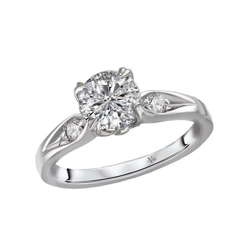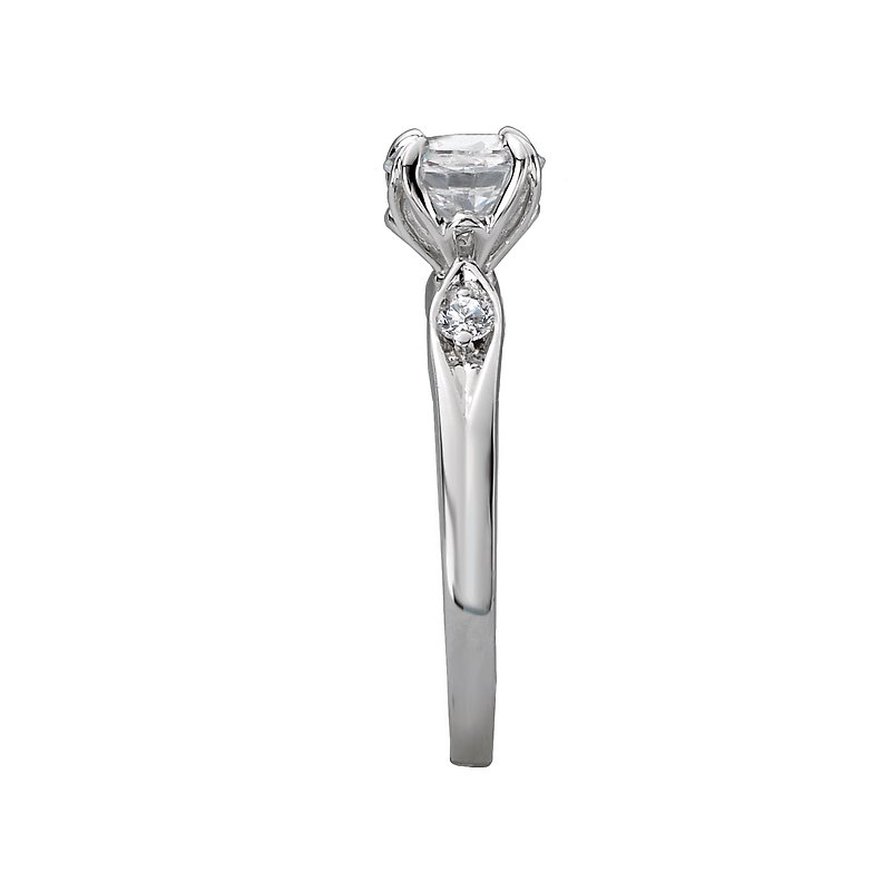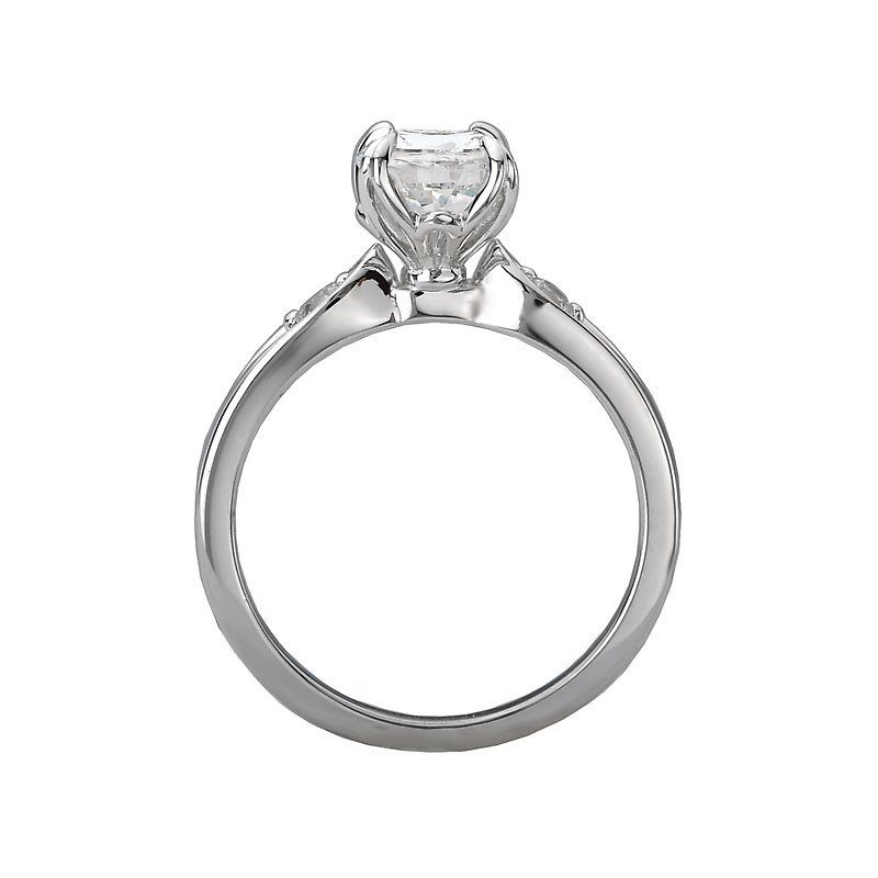 Engagement ring features sparkling diamonds set in high polished 14k white gold that surrounds the center setting. (D 1/10 carat total weight) This SEMI-MOUNT ring comes with NO CENTER STONE as shown but it will accommodate a 6.5mm round center stone.
