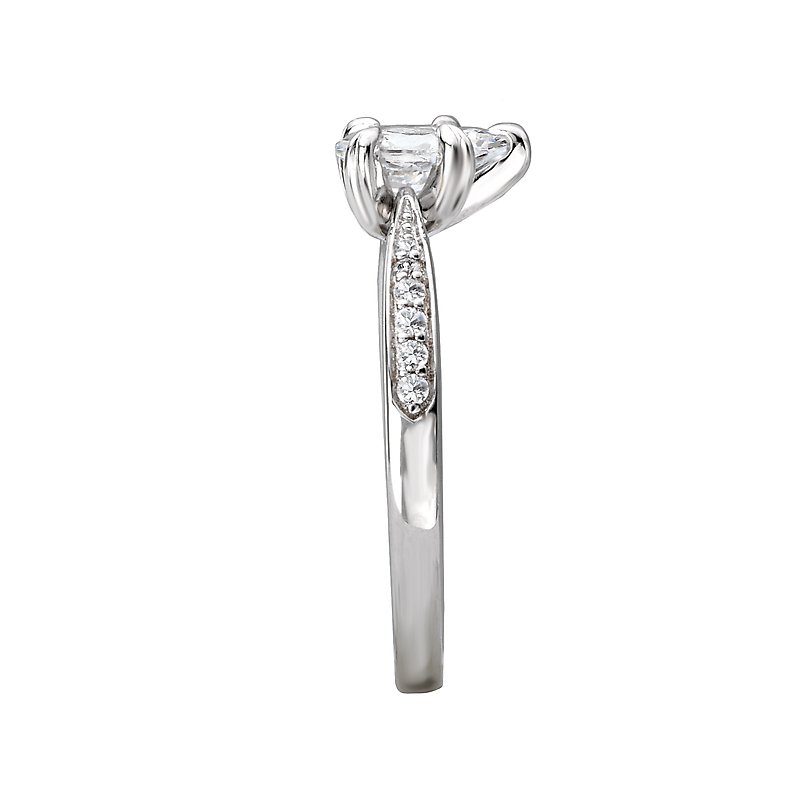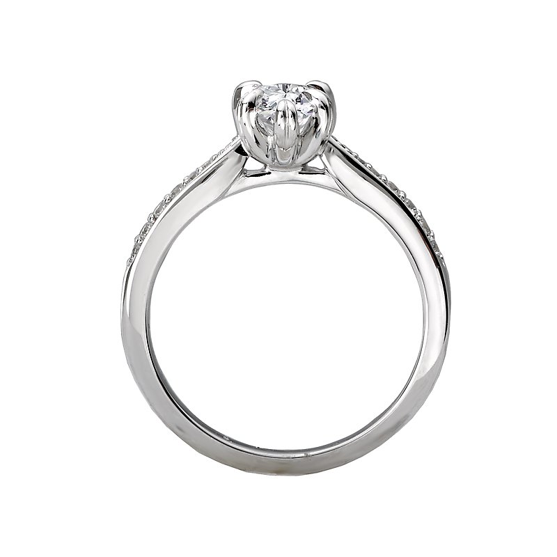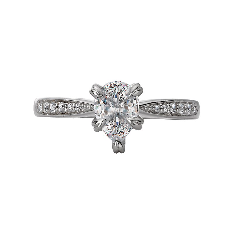 Gorgeous engagement ring crafted in high polished 14k white gold is embellished with tapered brilliant cut diamonds aligning the shank and will accommodate a 7x5mm pear shape diamond center. (D 1/10 carat total weight)