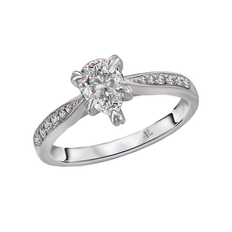 Exquisitely crafted of 14kt white gold and diamonds, each piece represents the designer’s vision of romance and elegance.
