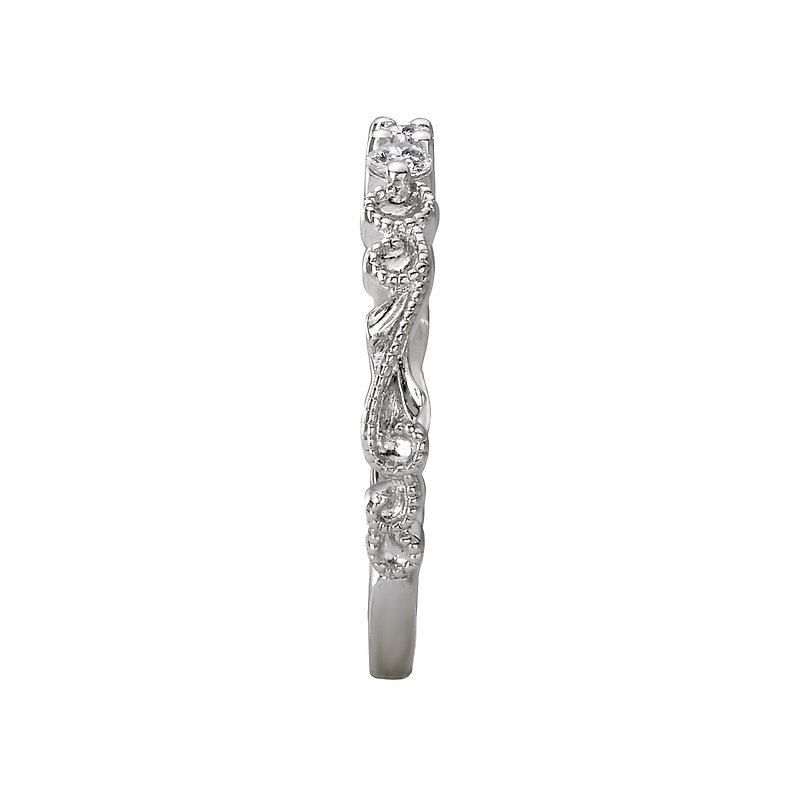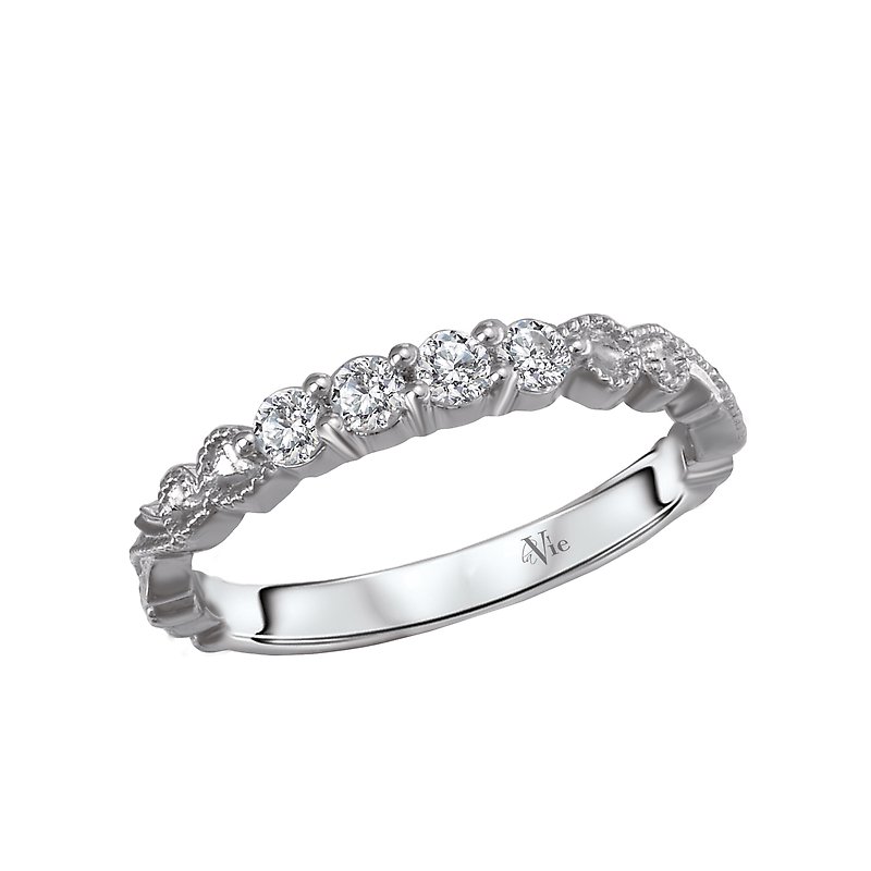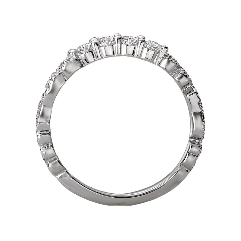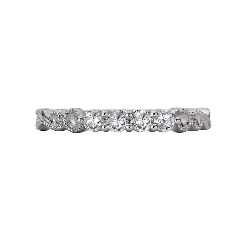 This stunning wedding band is lined with brilliant cut diamonds and milgrain set in high polished 14kt white gold. (D 1/4 carat total weight)