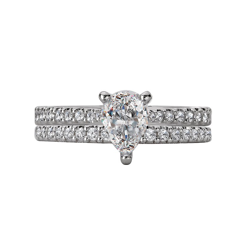 Exquisitely crafted of 14kt white gold and diamonds, each piece represents the designer’s vision of romance and elegance.