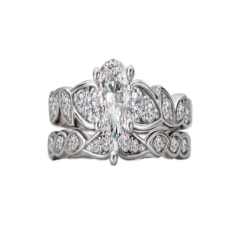 Exquisitely crafted of 14kt white gold and diamonds, each piece represents the designer’s vision of romance and elegance.