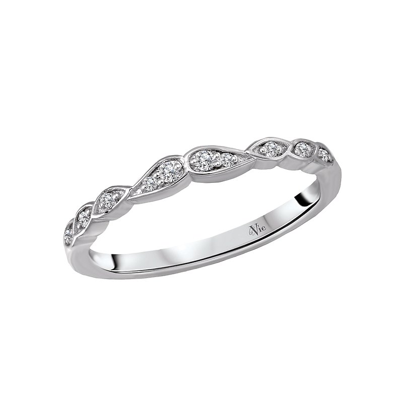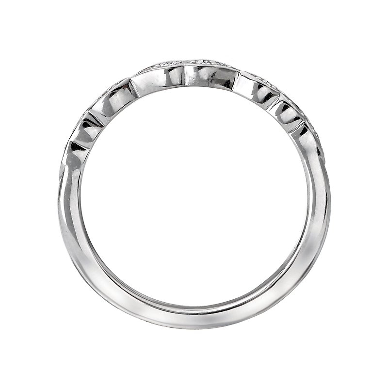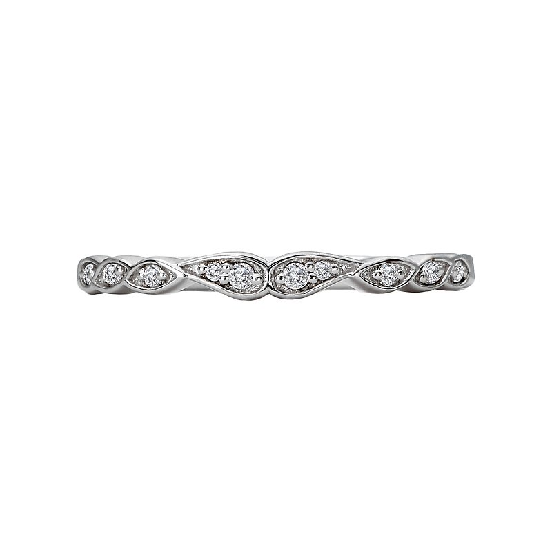 This scalloped matching wedding band features round faceted diamonds set in 14k white gold. (D .07 carat total weight)