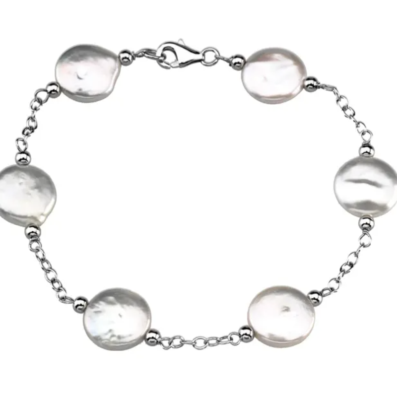 Pearl Jewelry Sterling Silver Coin Pearl Bracelet