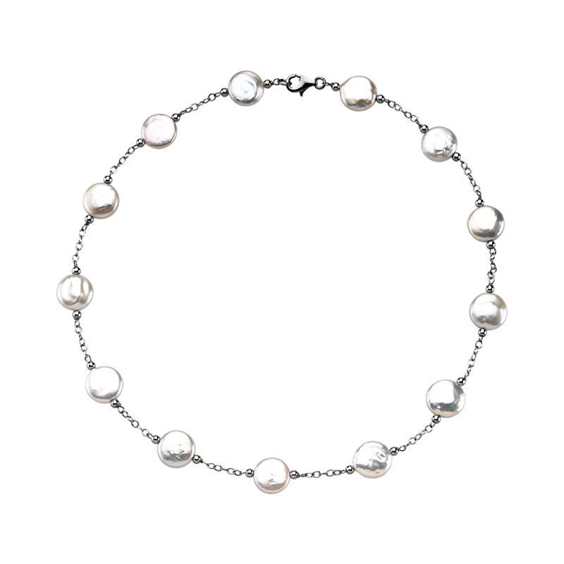 Pearl Jewelry Sterling Silver Coin Pearl Necklace